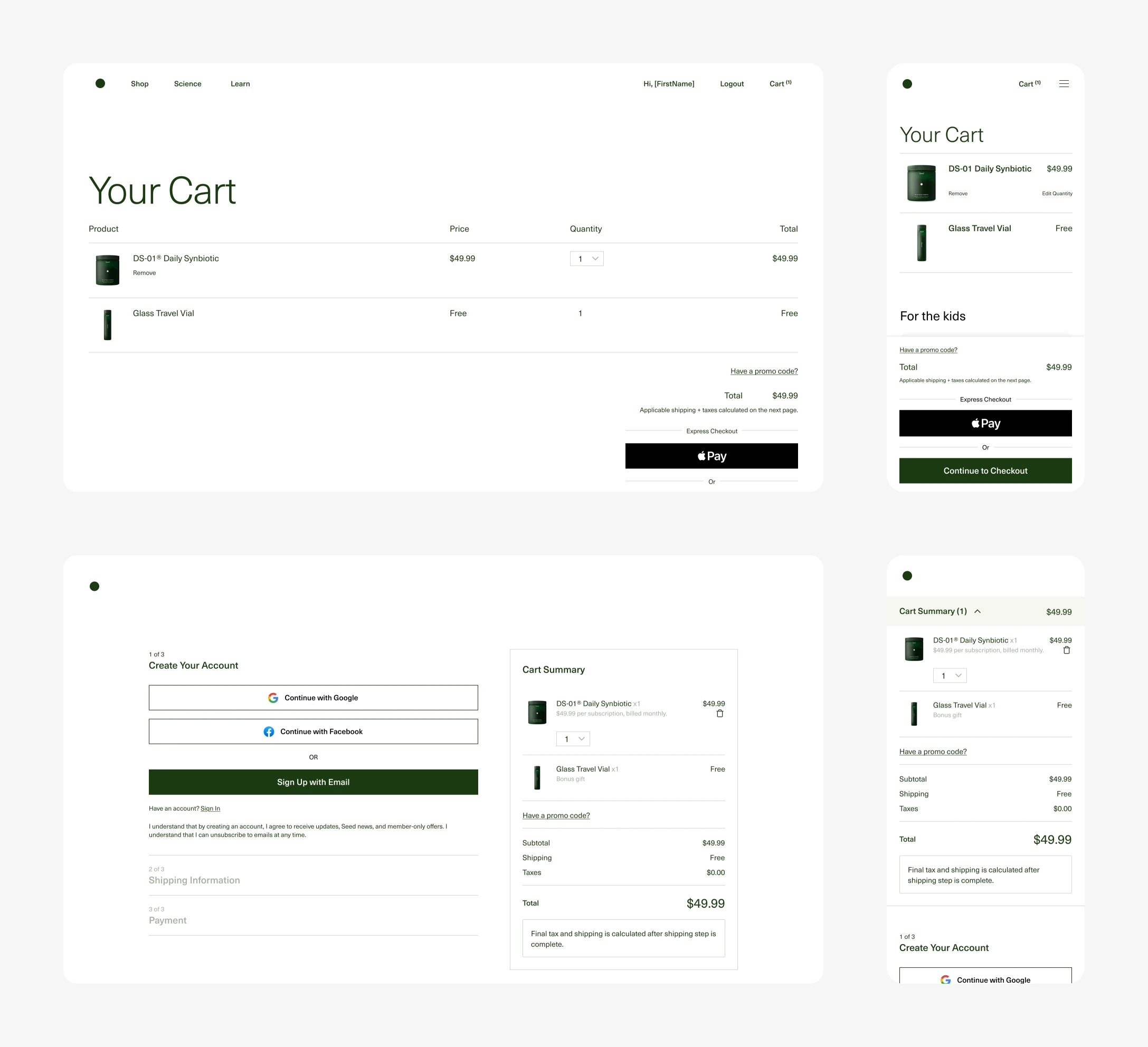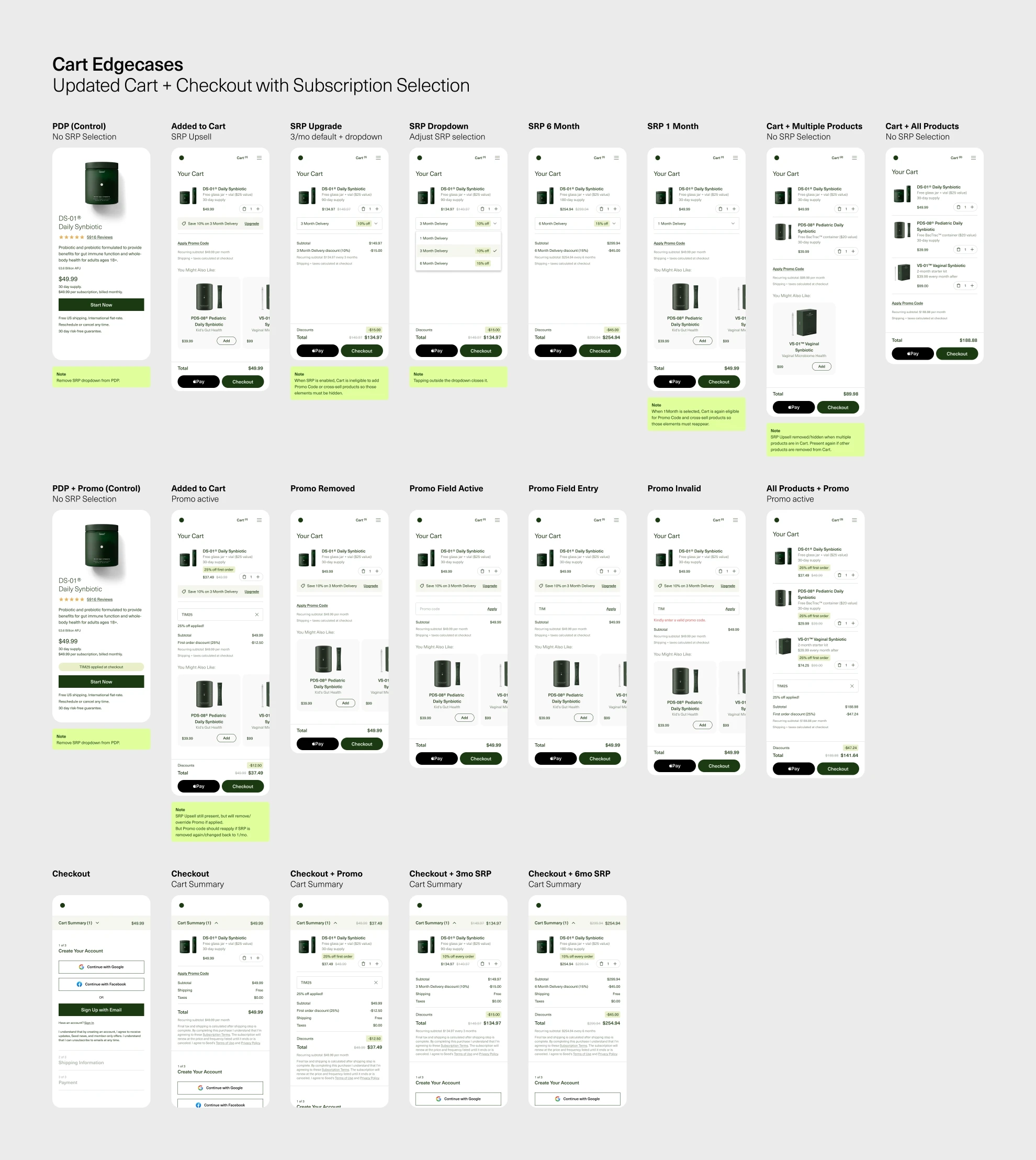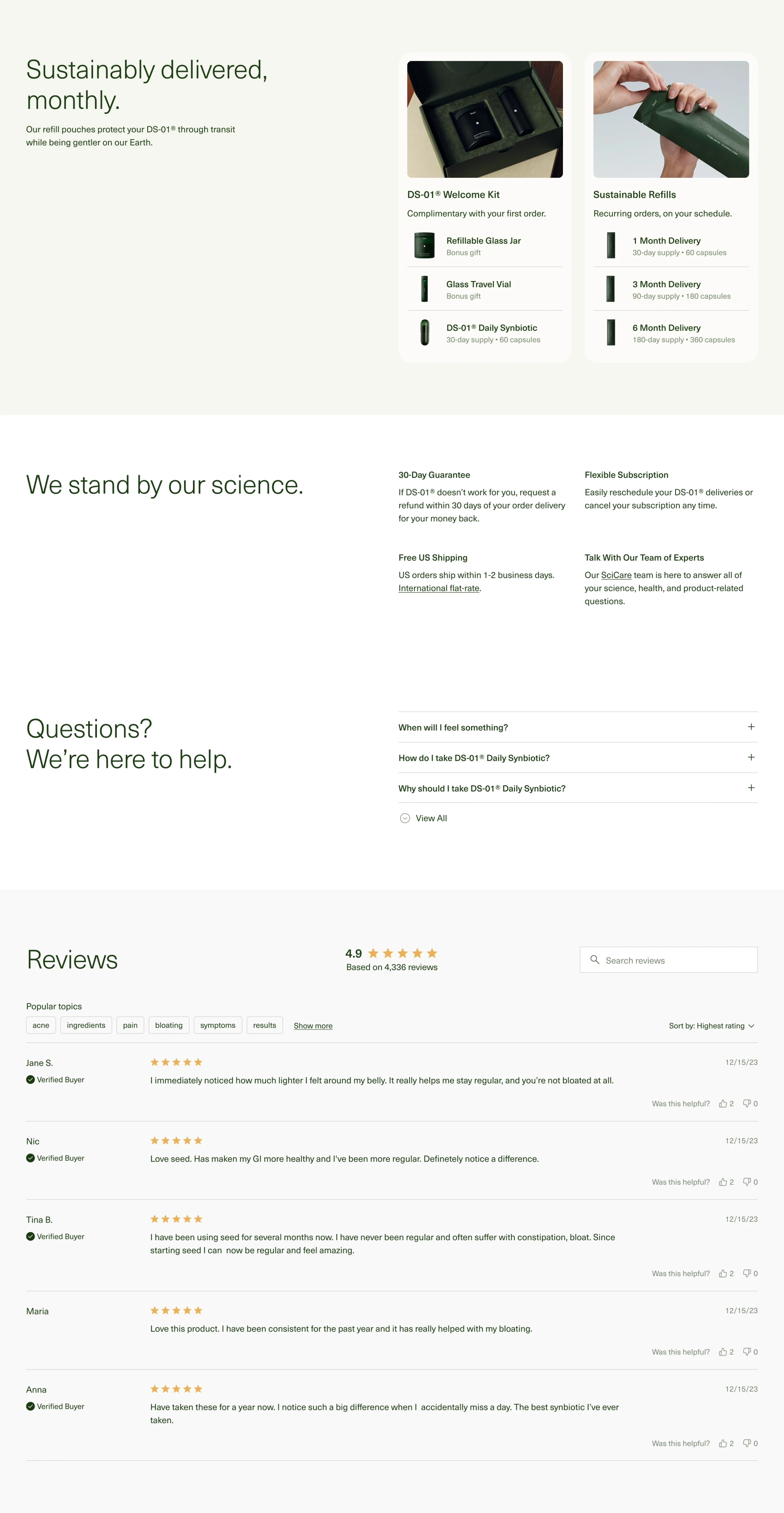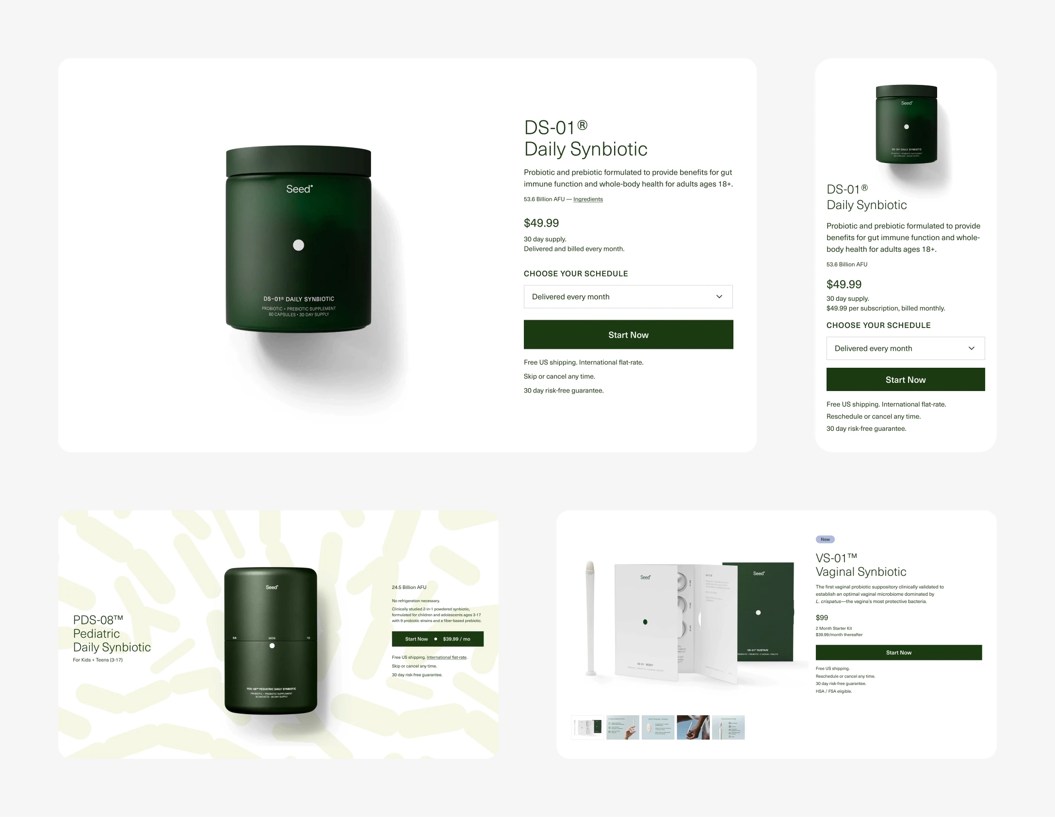 The goal for this work was to create a scalable foundation for product pages as Seed was planning to expand their product offerings. With a planned release of "co-biotics" that compliment their core product offering, a lot of work and thinking also went into the product strategy behind cross-selling, up-selling, and architecting a new multi-product ecosystem.