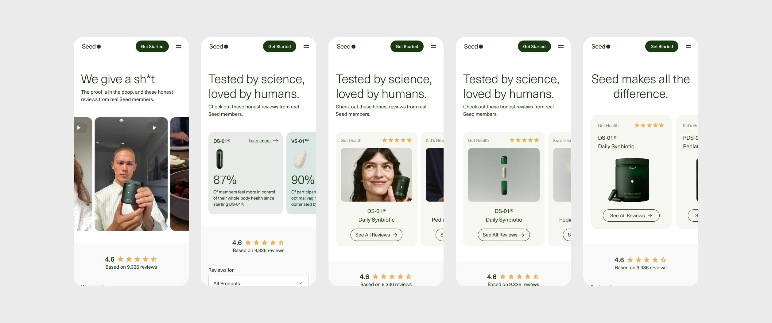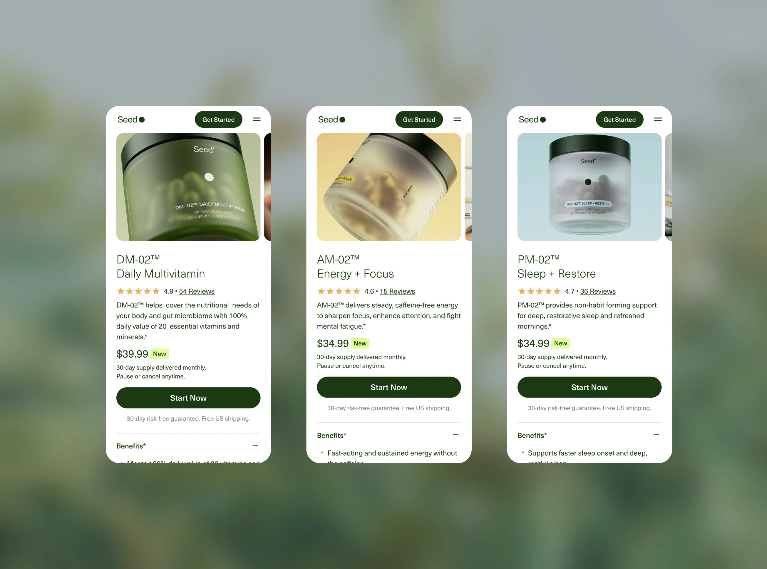 Seed had 3 products with bespoke, unaligned PDP designs and user experiences. The redesign need to scale to all current and future product offerings.