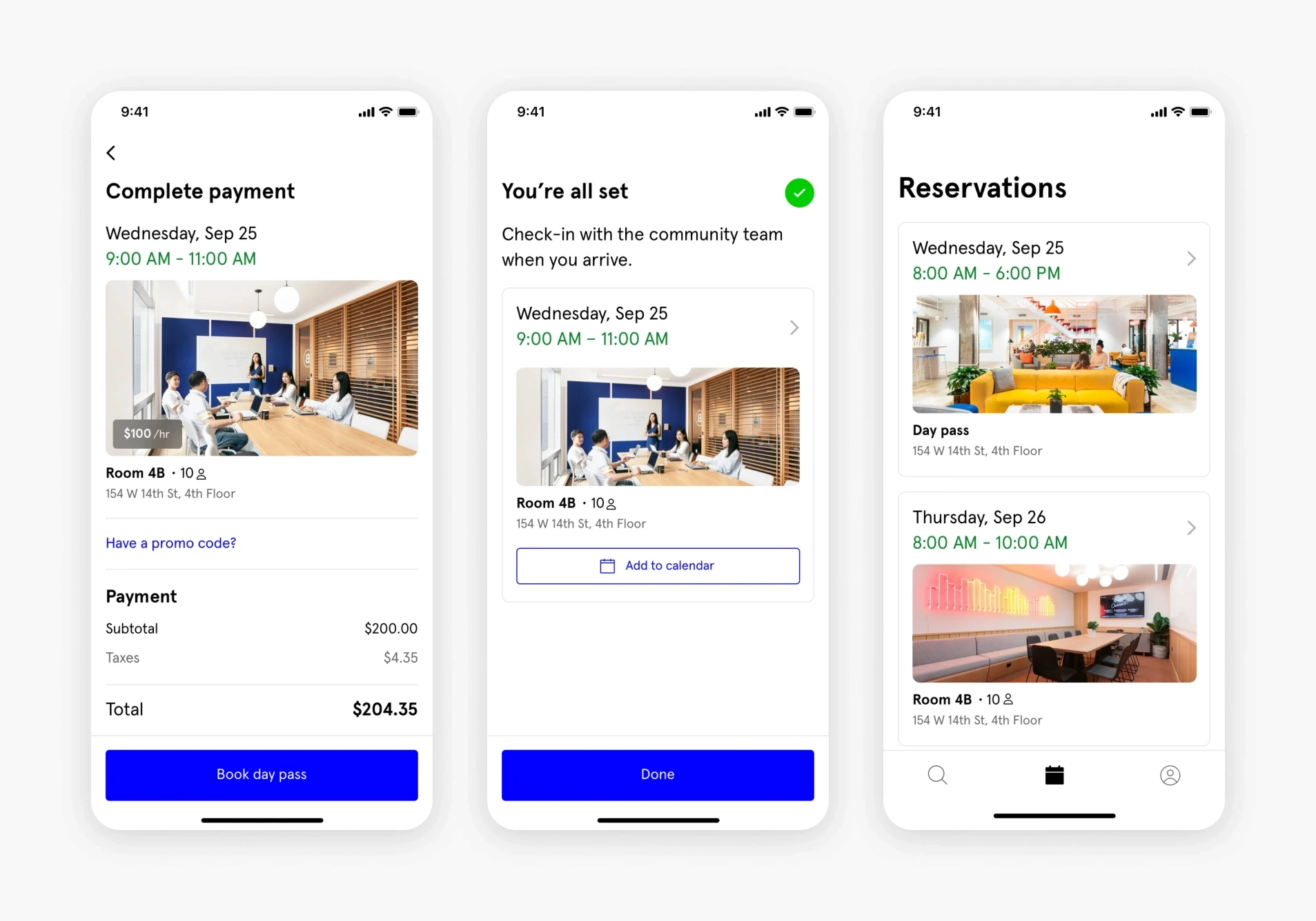 They want to get to concentrating as quickly as possible. Installing an app, carrying a key, inputting payment are all cumbersome barriers to that goal.They want to book space, not desks